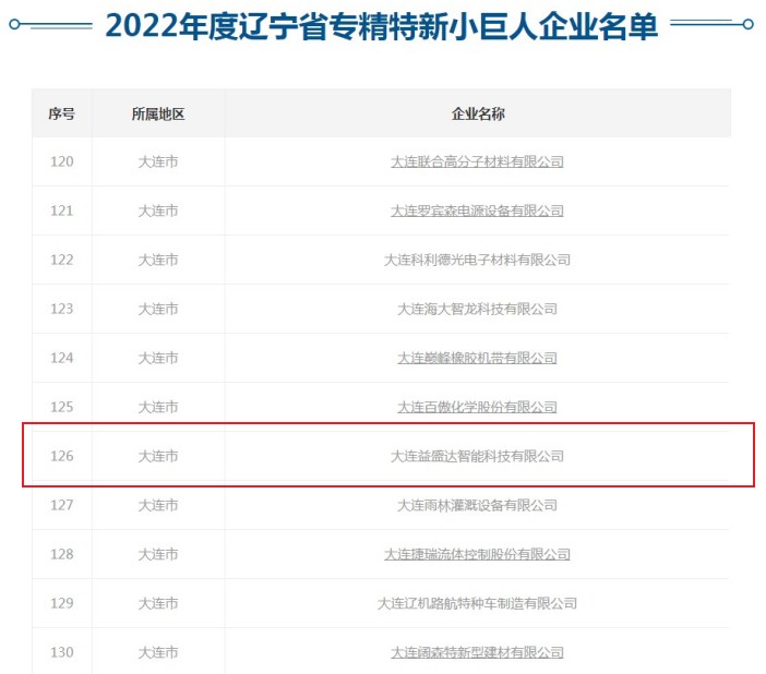 近日,大連益盛達(dá)智能科技有限公司憑借出色的綜合實(shí)力,榮獲2022年遼寧省專精特新“小巨人”企業(yè)稱號。